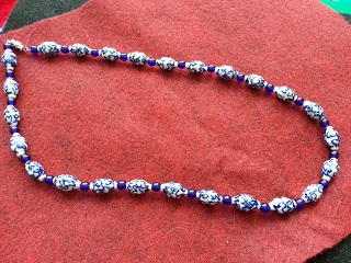 Blue and White ceramic beads are seperated by vibrant cobalt blue glass rounds in a necklace that evokes the feel of the city of Delft in the Netherlands, where the famous Delft-Blue pottery originated.