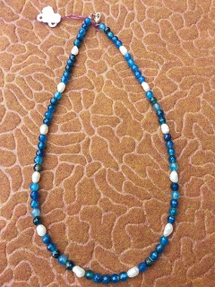 Freshwater white pearls are paired with dyed blue Agates to create this beautiful Ocean inspired necklace.