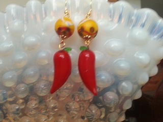 Hot and Tasty is what comes to mind when I see these - very Southwestern is what I was thinking at the time. The peppers are glass lampwork and the upper beads are painted ceramic.